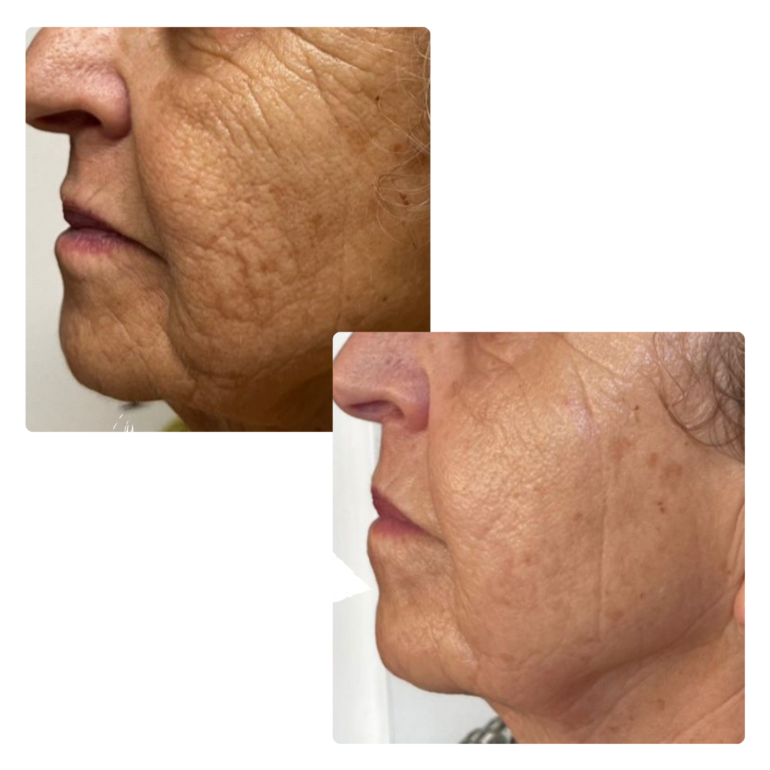 Bereits nach der ersten Behandlung sind sichtbare Verbesserungen erkennbar. Die Haut wirkt straffer, glatter und erfrischter.